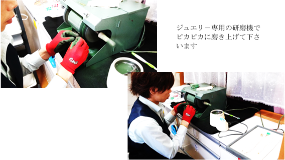 ジュエリ-メ-カ-の社長様自らご協力いただき、専用の研磨機を持ち込んでのアフタ-サ-ビスです。もちろん他メ-カ-の商品でも構いません。ピッカピカに蘇りますよ!