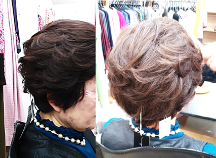 いかがですか?ご試着前と後、随分と印象が違いますよね?! お若く見えます!! ショ-トからミディアム、ストレ-トやカ-ル、カラ-など種類も豊富です。人毛100%で大手メ-カ-様に負けない品質です。アフタ-サ-ビスもバッチリですので、髪の事でお悩みの方はぜひお試しください。